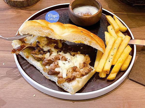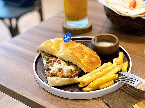 兩片麵包夾著豐富的牛肉和濃郁的起司🧀️