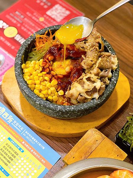 最後放上生蛋黃,淋上特製韓式辣醬,