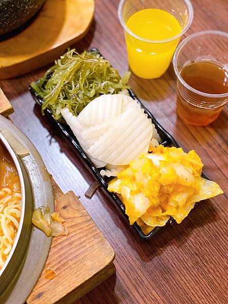 搭配玉米、蘿蔔、泡菜、海帶絲等配菜,