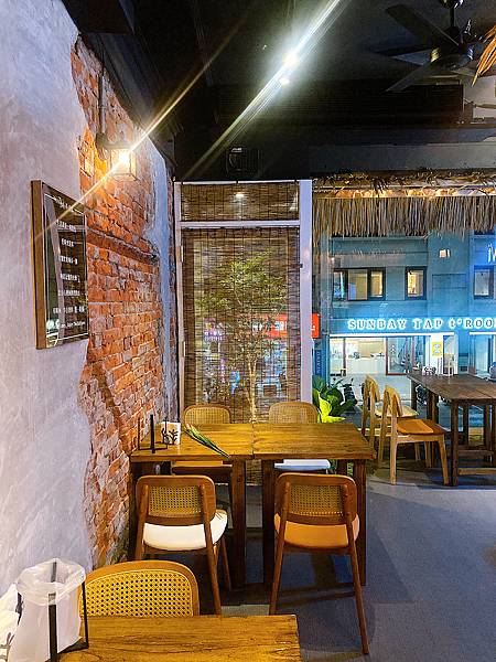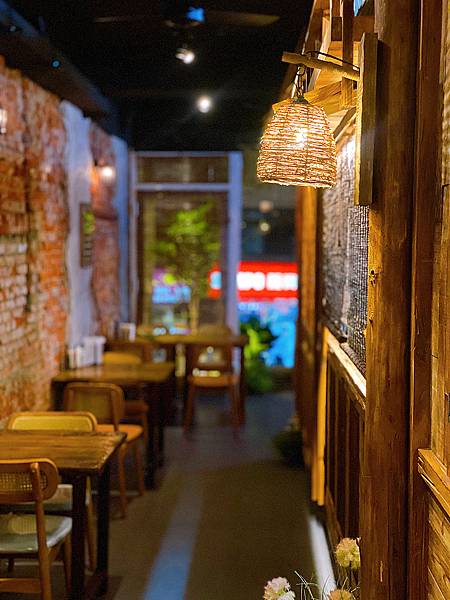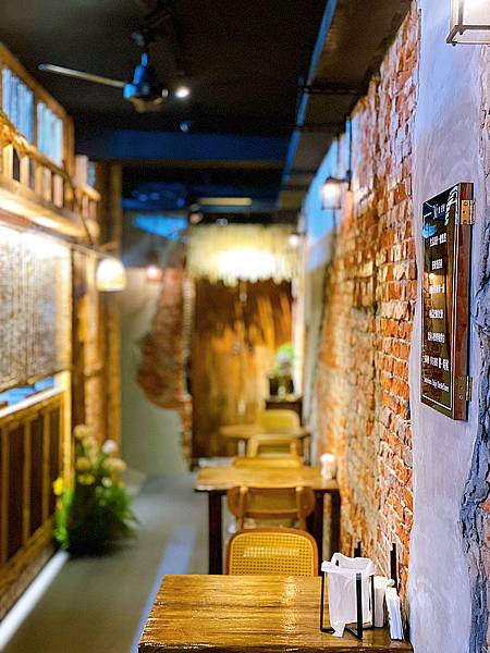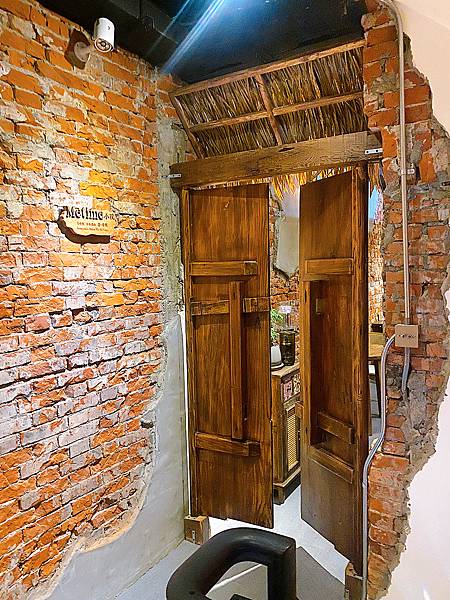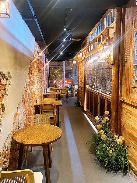 木製的桌椅門窗,半裸露的紅磚牆面,