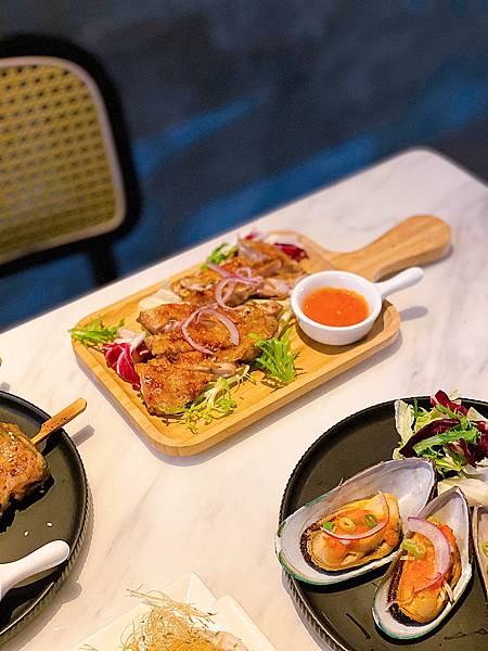 南洋風味淡菜 $245  鹽烤雞腿排 $150